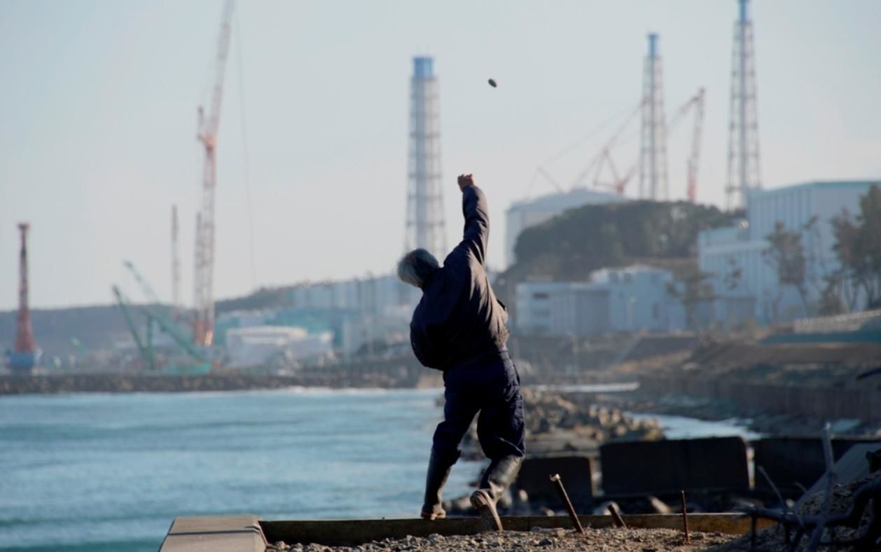Naoto Matsumura face à la centrale de Fukushima Daiichi (© Koji Harada, agence Kyodo)